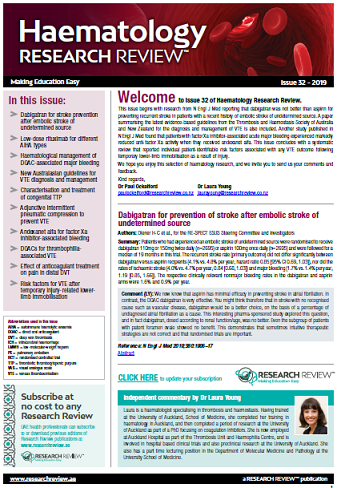 View back issues of Haematology Research Review publications here. Also below are reviews of recent international medical conferences, new medicines, speaker events and other relevant publications.