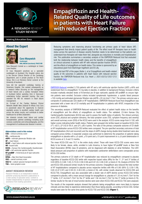 A free full-text PDF of the paper, Butler J, et al. Empagliflozin and health-related quality of life outcomes in patients with heart failure with reduced ejection fraction: the EMPEROR-Reduced trial. Eur. Heart J. 2021;42(13):1203-1212 is available here.