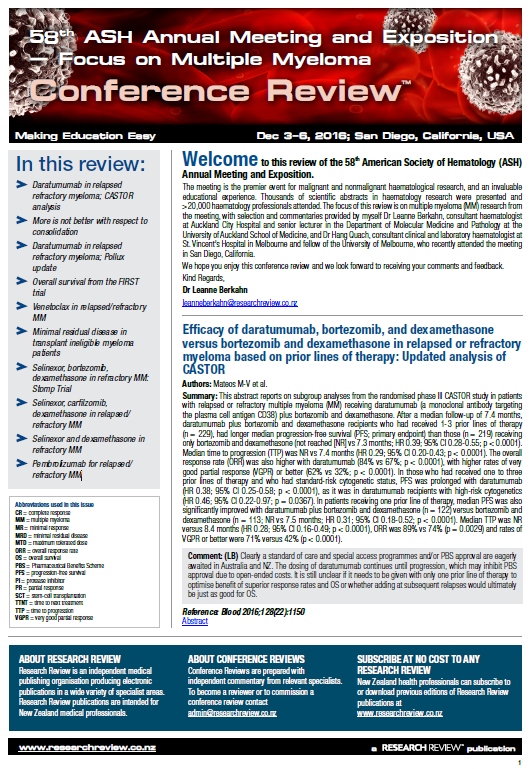Daratumumab in relapsed refractory myeloma; CASTOR analysis
