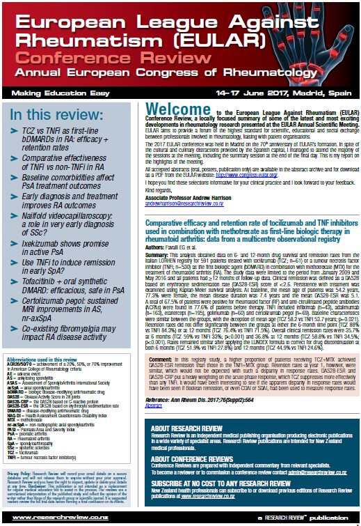 TCZ vs TNFi as first-line bDMARDs in RA: efficacy + retention rates